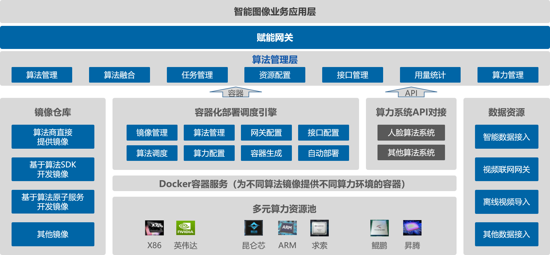 基于健壮的平台能力,实现多厂商、多算法、多算力的集中管理,实现算法和算力解耦。