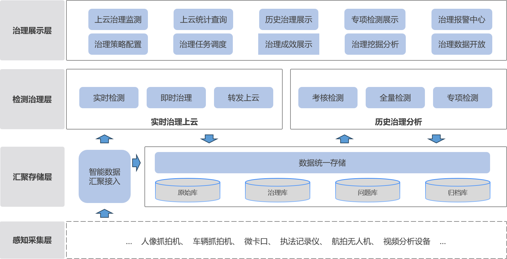 视图数据治理平台:对接图像资产库系统实现智能抓拍设备的档案接入;统一进行实时和历史治理任务的创建,以及对治理任务进行监测、启动、暂停、停止的调度控制;提供上云治理监测、上云统计查询、历史治理展示、专项治理展示、治理成效展示、治理挖掘分析的可视化呈现;对迭代的治理指标服务进行升级。